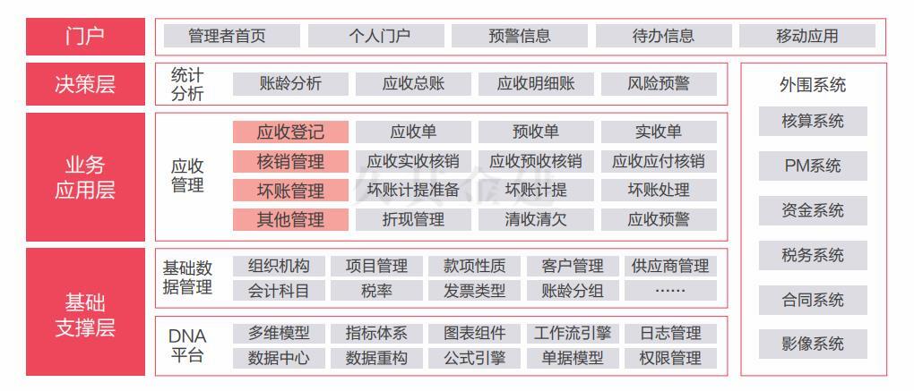 久其金建应收应付管理系统将企业的应收业务进行统一整合,规范账务处理,记录销售业务及其他业务所形成的应收款项,处理应收款项的收回、坏账、转账等情况。