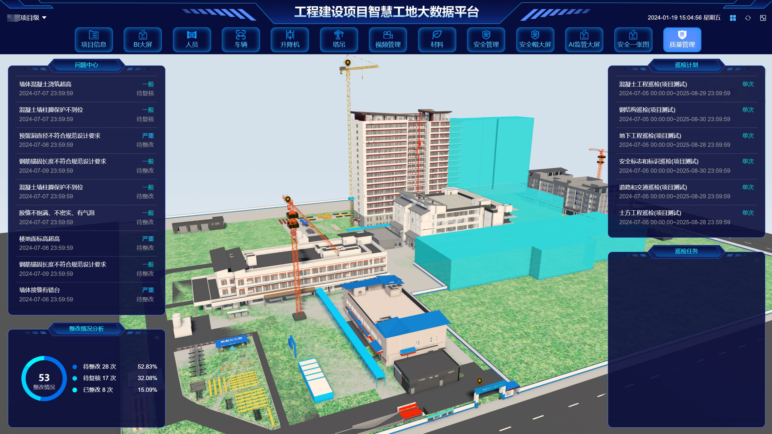 本次项目中,我们提供智能安全帽、塔吊监测、深基坑监测、高支模监测、施工电梯监测、智能地磅、智能用水、智能用电、环境监测等智能化技术服务,搭建一体化智慧工地平台,集成进度、安全、质量、绿色施工管理,通过实现现场端数据采集和平台化数据应用,对项目建设现场的“人机料法环”进行全方位监测管控,辅助施工作业和管理决策,助力高效施工、精益管理。